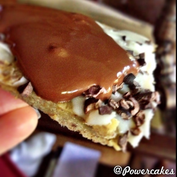 After it baked, I let it cool for a bit & then topped it with some melted coconut butter & cacao nibs that I then stuck into the freezer for a bit until it made a hard shell.
