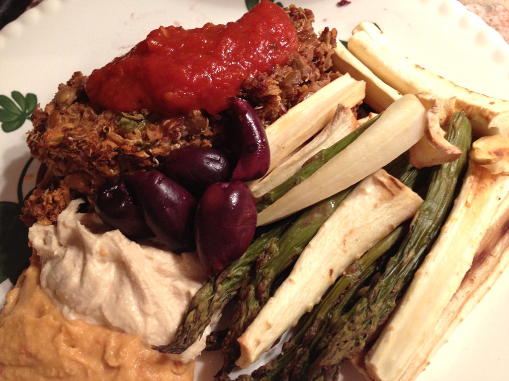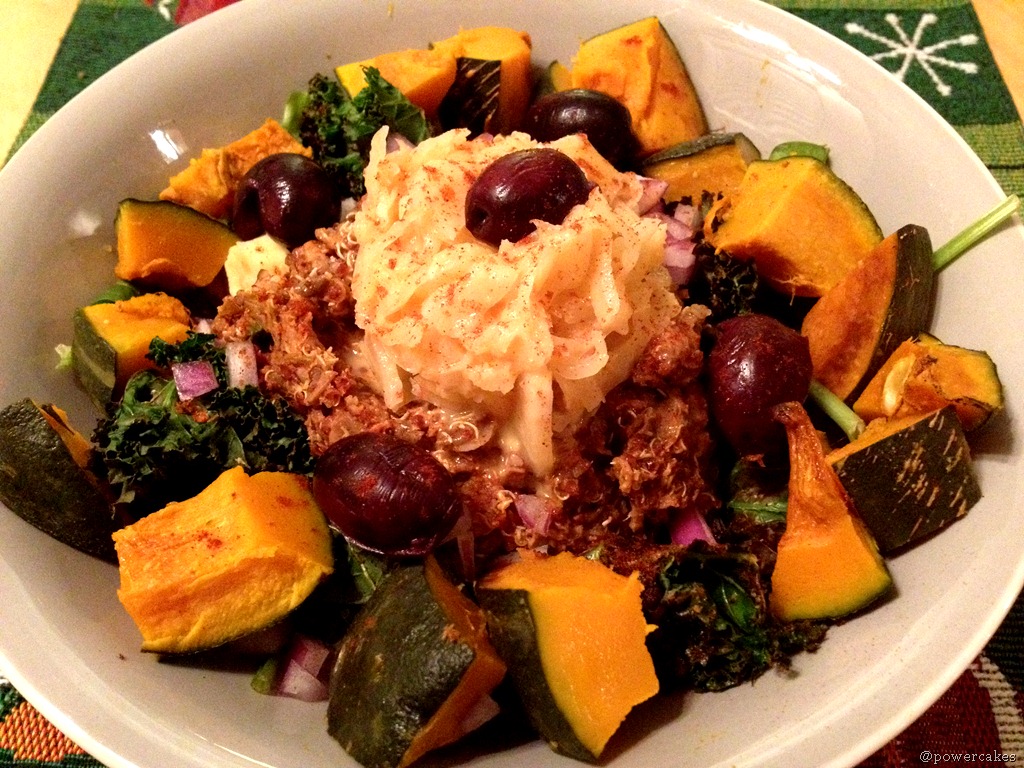 *Chopped roasted kabocha squash, red onion, LENTIL LOAF,