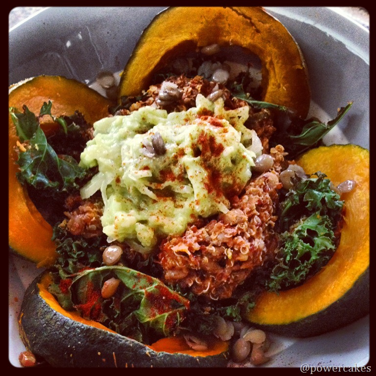 I spy kabocha squash ( @stuftmama & I are obsessed), with a bed of kale chips,