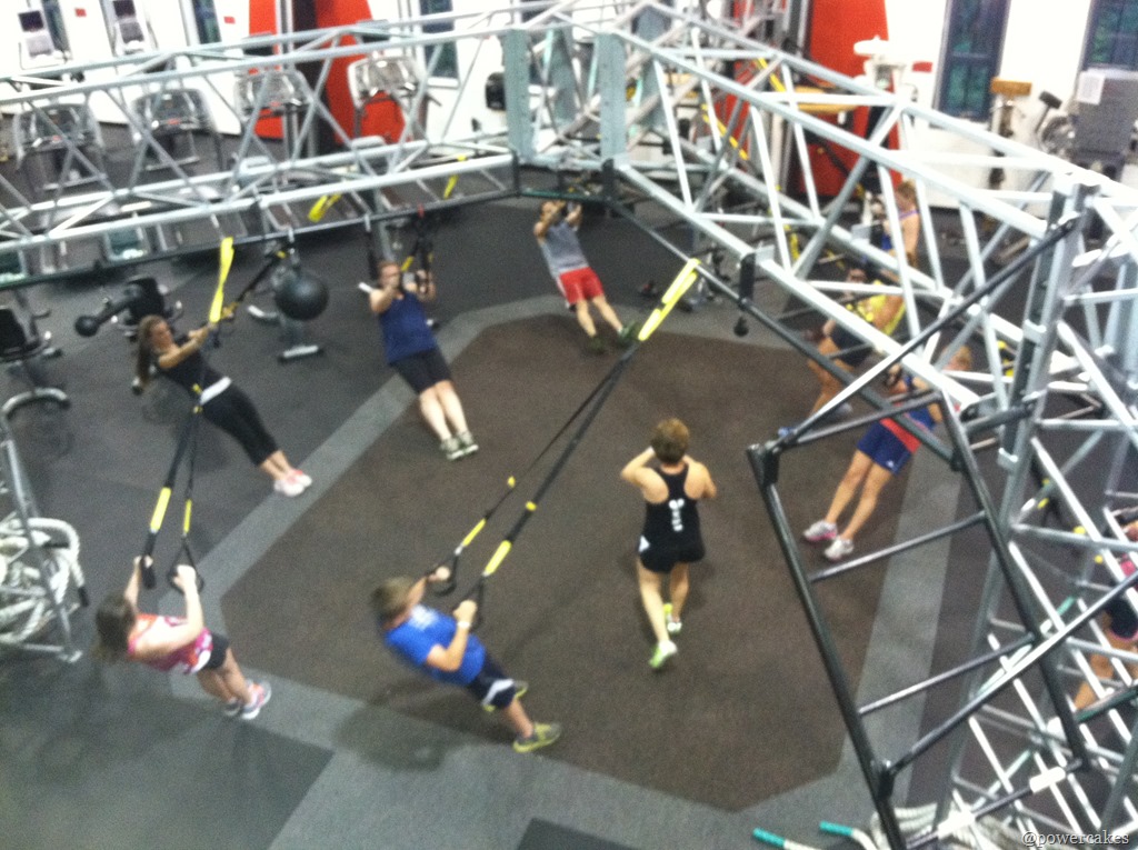 Mamacakes was in charge of the TRX portion of the bootcamp.
