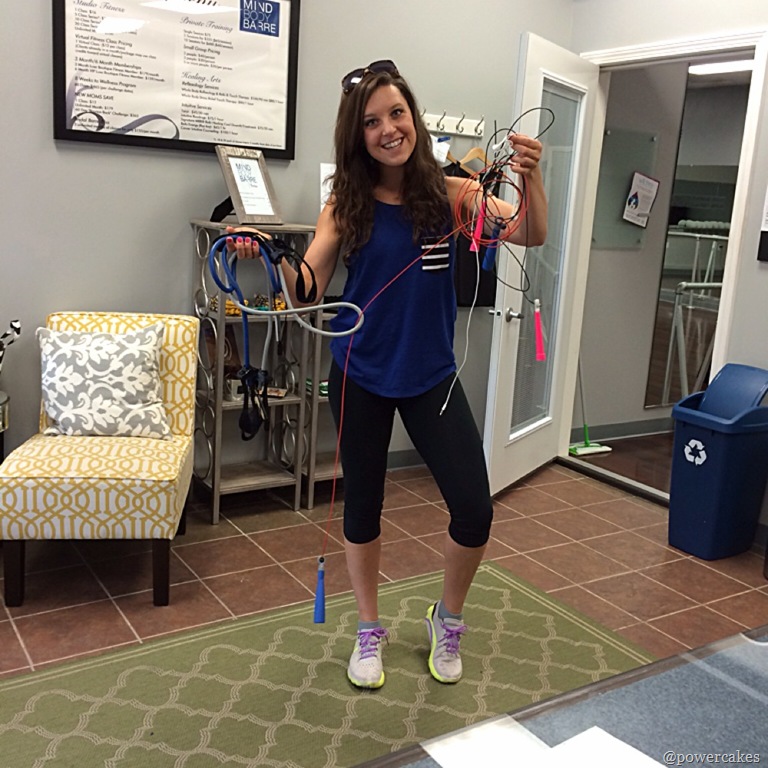 We got to incorporate some of my favorite go to’s like the Harbinger Fitness Resistance Bands & jump ropes that obviously got a bit tangled during my travels. They also have a new beaded rope that’s legit for doing double unders & speed work!