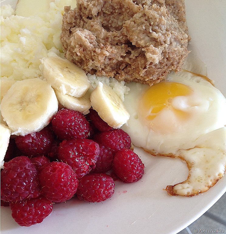 The next morning he made me breakfast – HIYO! Eggs, oats, & fruit is actually what I was craving…plus I wasn’t sure if he could master the powercakes yet without some guidance ;] just kidding…but really.