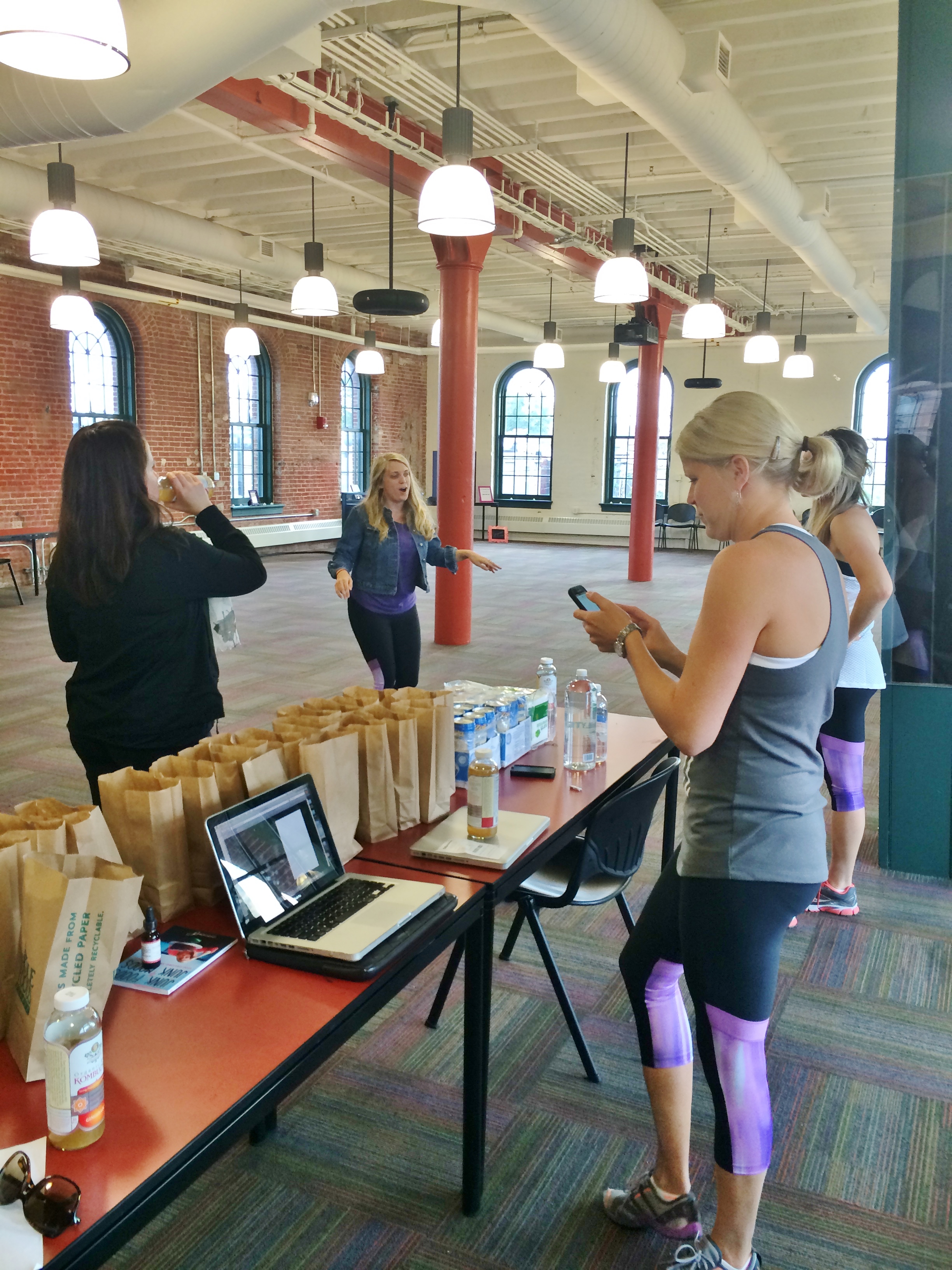It was so fun because it correlated with Expo East (which will be a whole separate post) and we also got to see our Baltimore peeps! Planning to be in Baltimore was perfect timing to get our friends at UA involved since their HQ is there. They were MORE than generous to have a package of socks, headband, & hair ties waiting for each attendee.