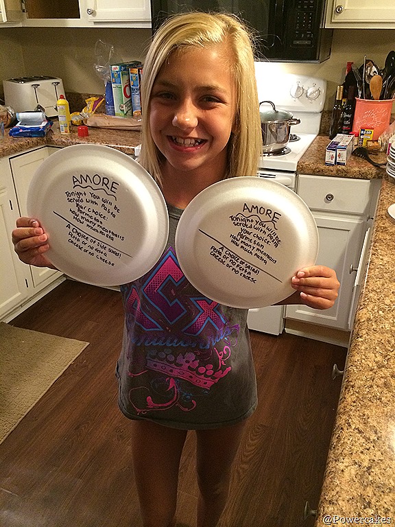 Little Kyra boo was our waitress for the night and made some menus on plates! Our restaurant was titled Amore for the night. Gotta love the choice of “fetta” or “no fetta”. That’s what makes these moments so memorable ![]()