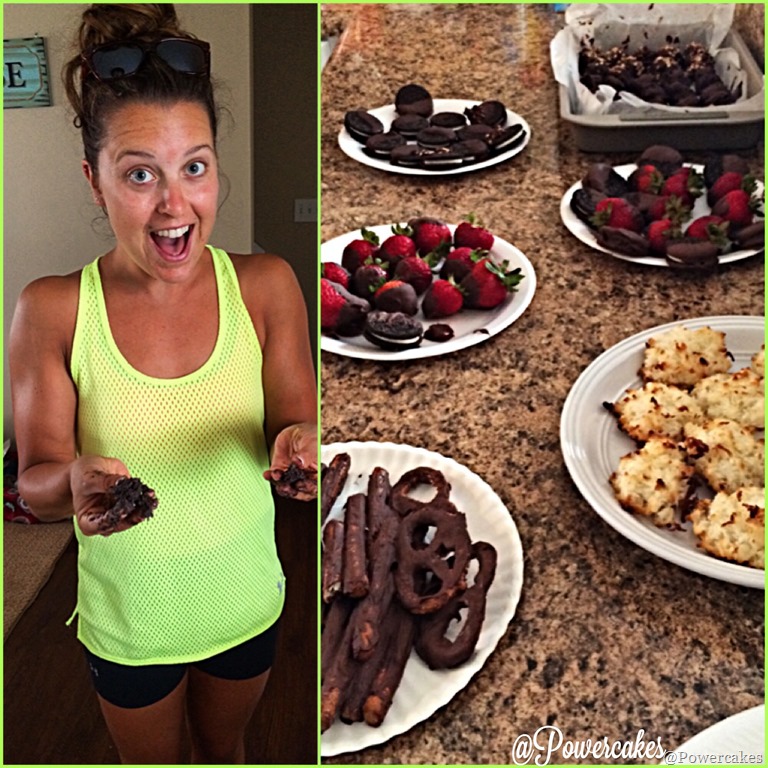 The “kids” night was spaghetti followed by dessert which was chocolate dipped everythanggggg. Even fingers.