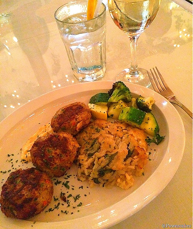 I almost ordered Salmon for dinner, per usual, but then saw the special was Crab Cakes & instantly my mind was made up. Serves with wild rice risotto & sauteed veggies.