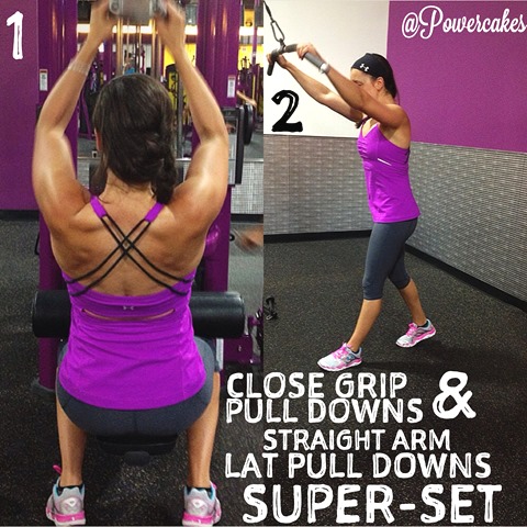 [Close Grip Lat Pull Downs] superset with [Straight Arm Lat Pull Downs]
