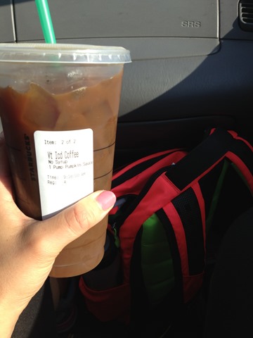 [1 pump pumpkin in a black iced coff – delish post morning workout!]