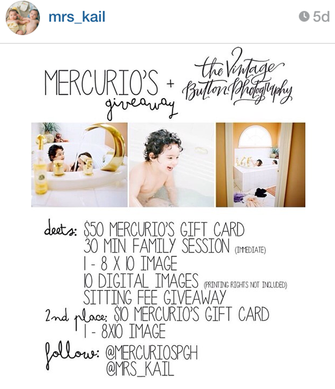 Abby is doing a Giveaway with a local Restaurant (Pizza Shop & Gelato) called Mercurio’s. You can enter by following Abby on Instagram & going into the Mercurio Restaurant in Pittsburgh! How fun. Winner will be drawn on the 16th so why not make some Valentine’s plans for some pizza & gelato? Sounds delish to me.