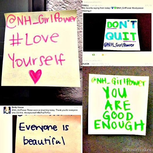 First off- SO proud of my NH girls continuing this #BODYpeaceMovement!! They posted notes on the mirrors throughout the girls bathrooms in the high school with positive messages.