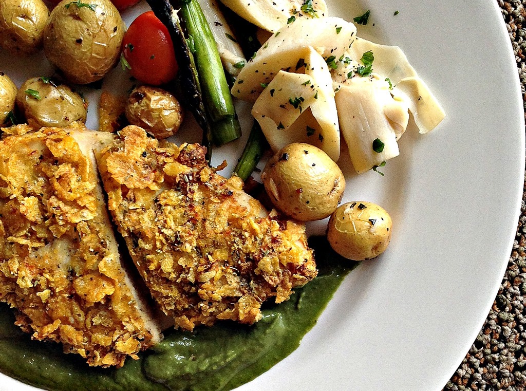 Did you know that corn flakes make a great crispy crust? Especially when you add in some spices & (optional) parm cheese!