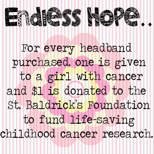 For every headband purchased, one headband will go to a girl with cancer and $1 will be donated to the St. Baldrick’s Foundation to fund life-saving childhood cancer research.