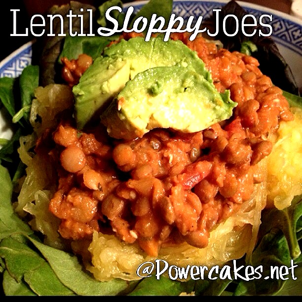 Anyway, I pulled out lentils (protein!), Nutritional Yeast (protein, vitamins!), cooked spaghetti squash (clean carbs!), canned tomatoes (veggies!) & avocado (healthy fats!).
