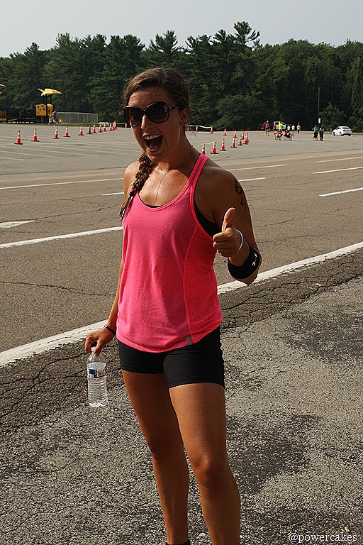 Oh yeah, rockin’ the backwards helmet. PS this part of the race may have been the most challenging. There was a steady incline hill that we had to do 4 times to start each lap & all of my spinning & biking to prepare really did pay off. A lot of power needed to get up this one!