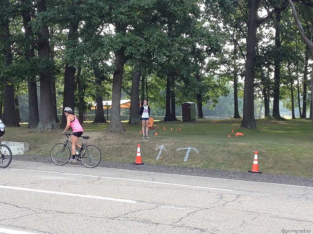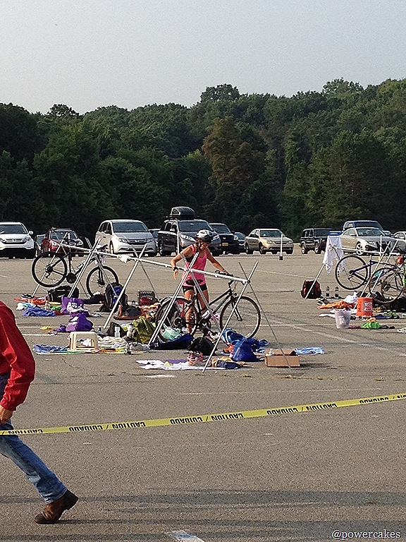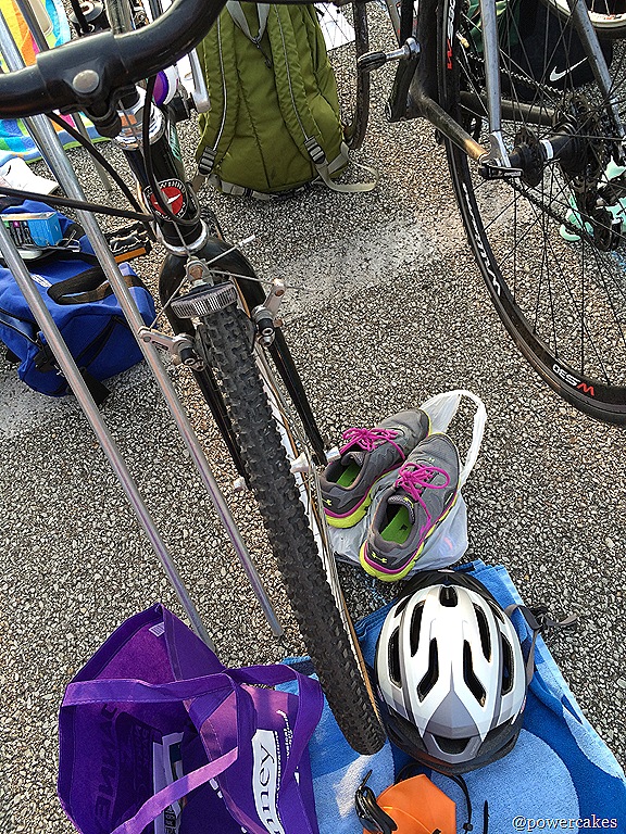 Bike Transition Story: Soooo I thought I was like WAY ahead of the game by throwing my helmet on first (just so I wouldn’t forget it), got dressed, & then I was off!