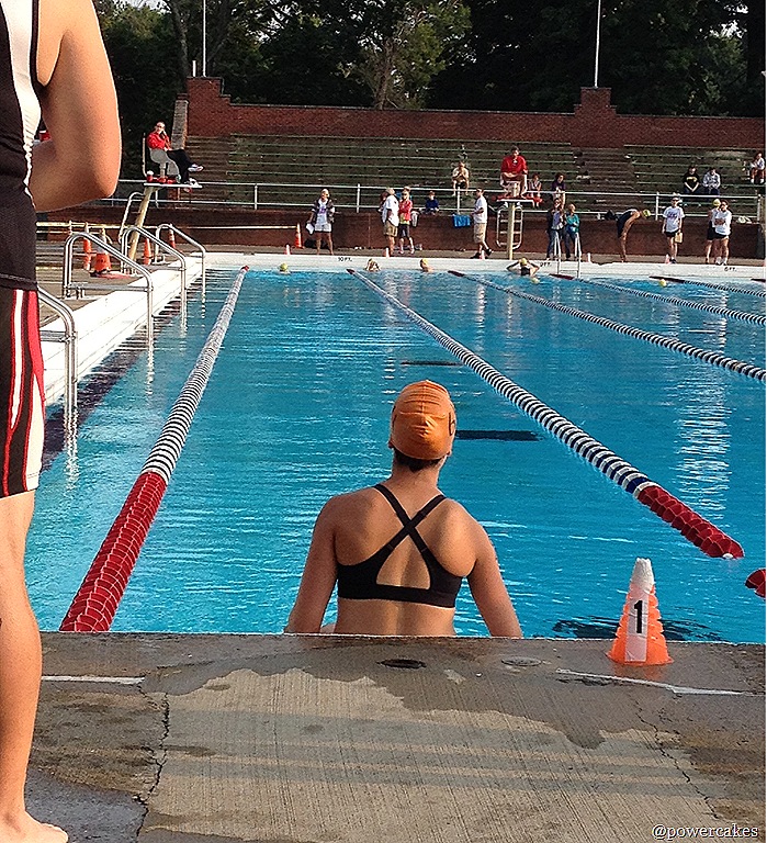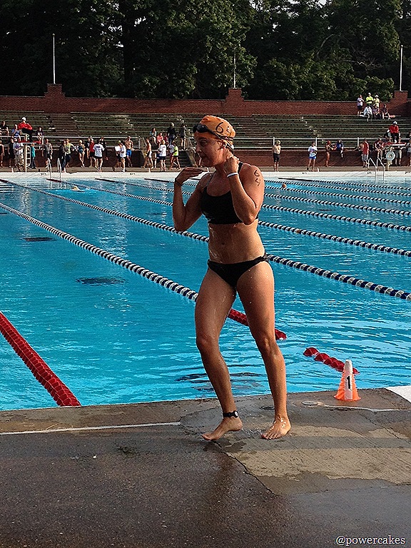 I was in heat #2 of the day so by 745am I was ready to go – swim cap on & all.