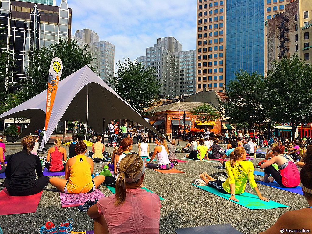 Anyone else up and at is on this Sunday morning? Started today off with a super fun run + yoga event held by Fittsburgh that started with a 3 mile run led by the lovely @run_intended followed by an hour of yoga in the square! Below is a picture of Mr. Fittsburgh himself, & fellow FitFluential Ambassador, Joe Vennare explaining some details before the run.