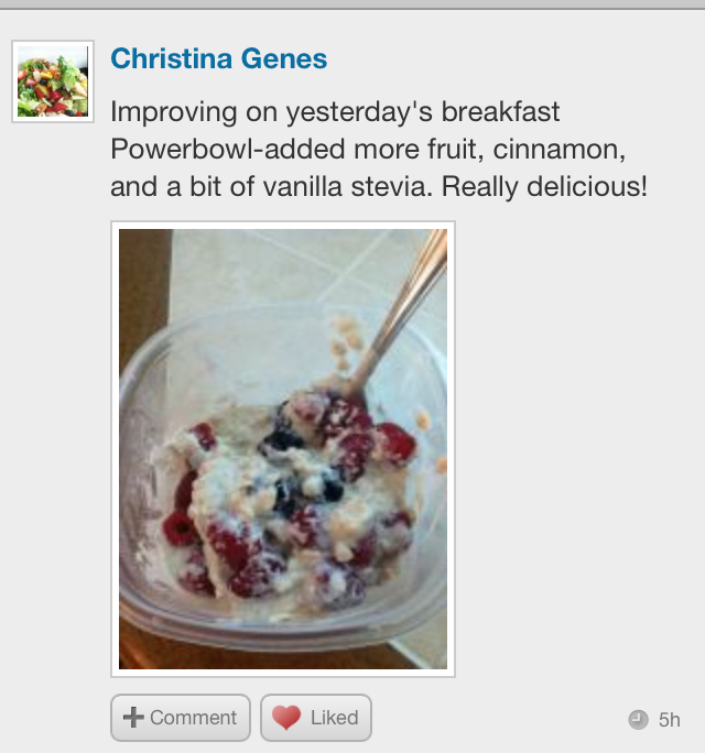 - Upload a picture or leave a comment of your own POWERBOWL creation to share with me & the other participants by downloading the iPhone app or going to the Challenge Loop site every day to post.