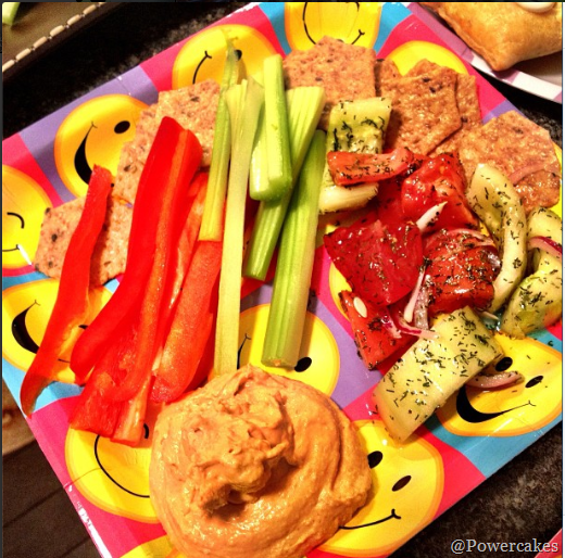 raw veggies, & lots of roasted red pepper hummus! #addicted