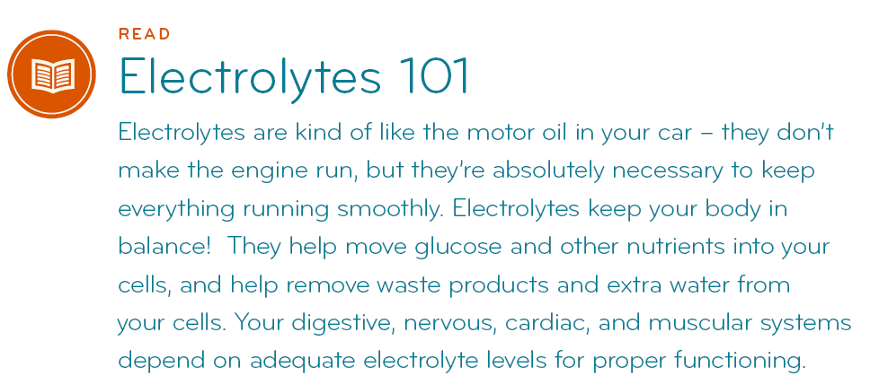 From what I learned, it’s key to find balance of electrolytes out vs. electrolytes.