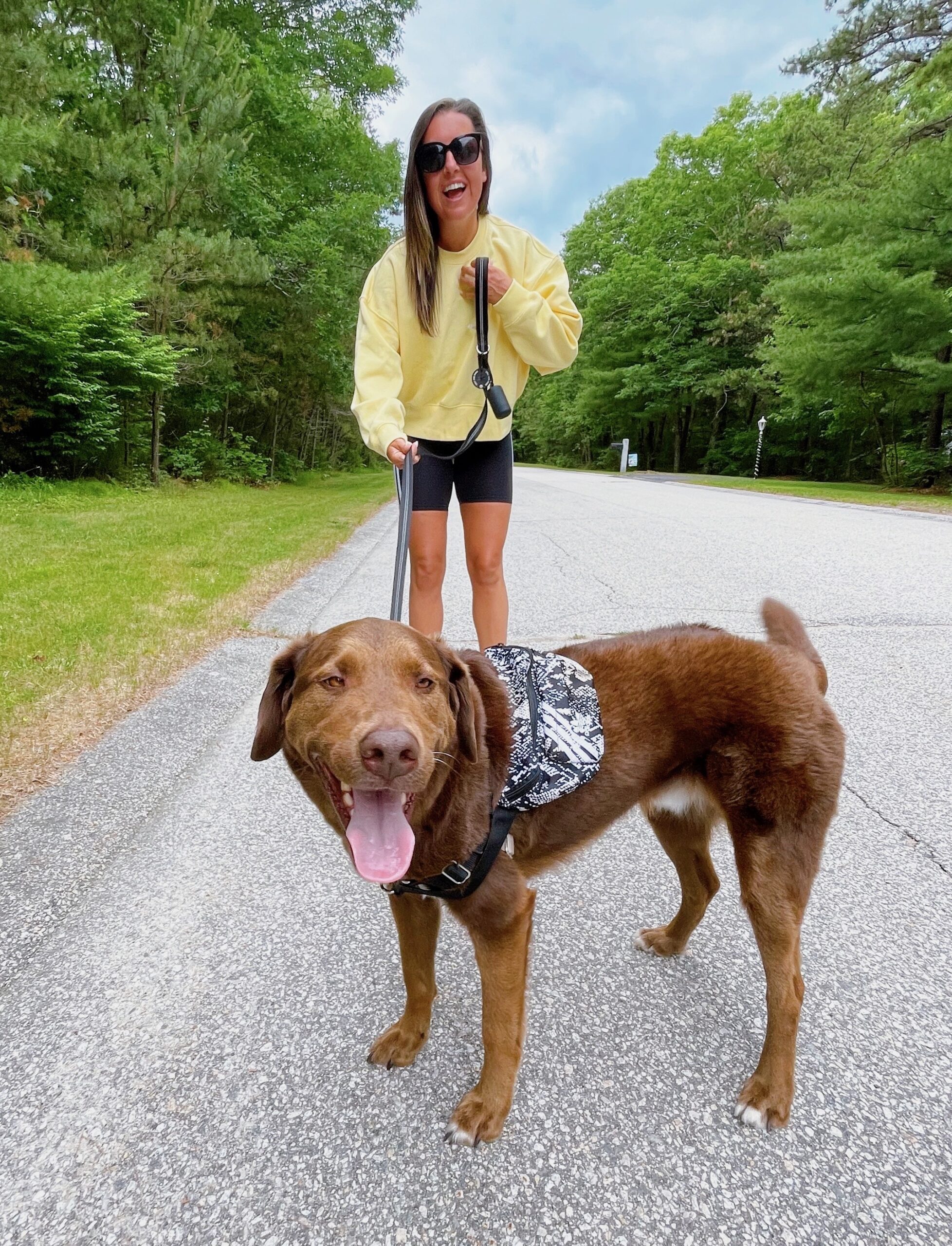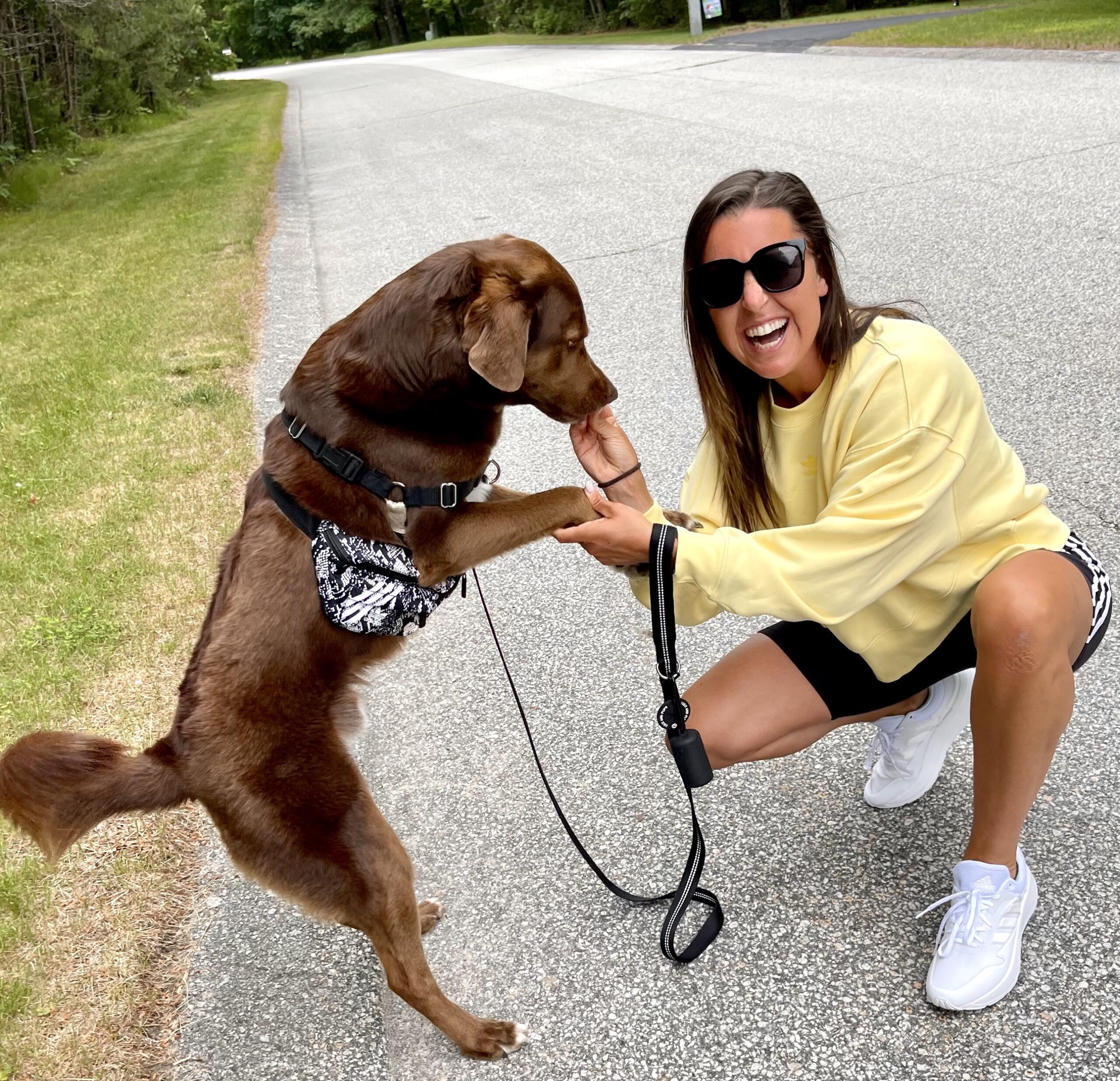 Pro tip: highly suggest putting a fanny pack waist bag ($28) on your dog to carry all the treats and poop bags, just saying.