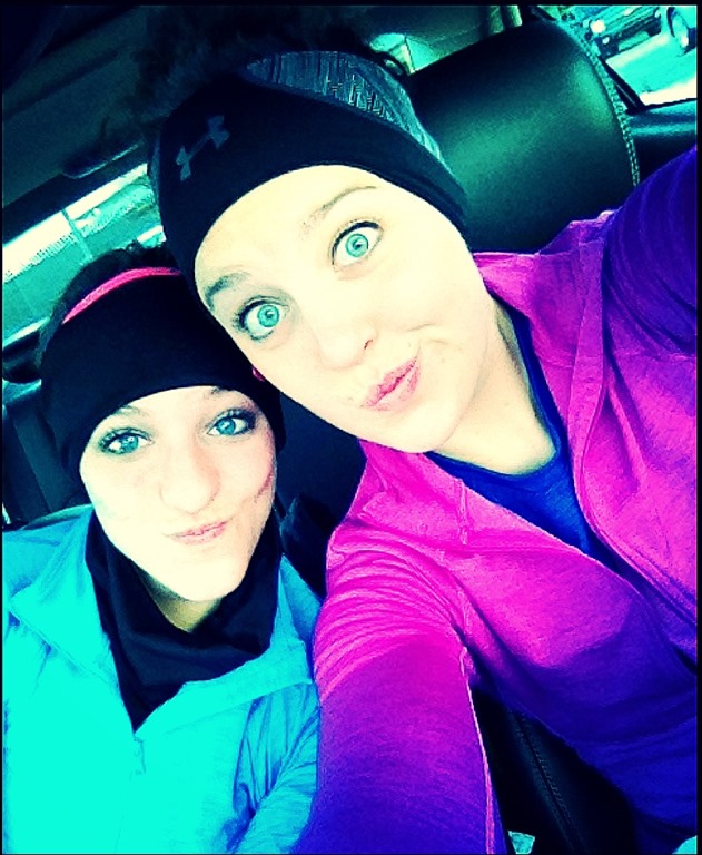 We were bundled in our Cold Gear thanks to our friends at Under Armour!! Let me tell you, we were very thankful to have it on! It was a whopping 18 degrees outside in the morning so we layered up in matching Cozy Knit Tops! I also had on the Cozy Crew top, Tech Gloves, & Rebel Storm Running Shoes. Jackie was rockin’ her Fleece Gloves too!