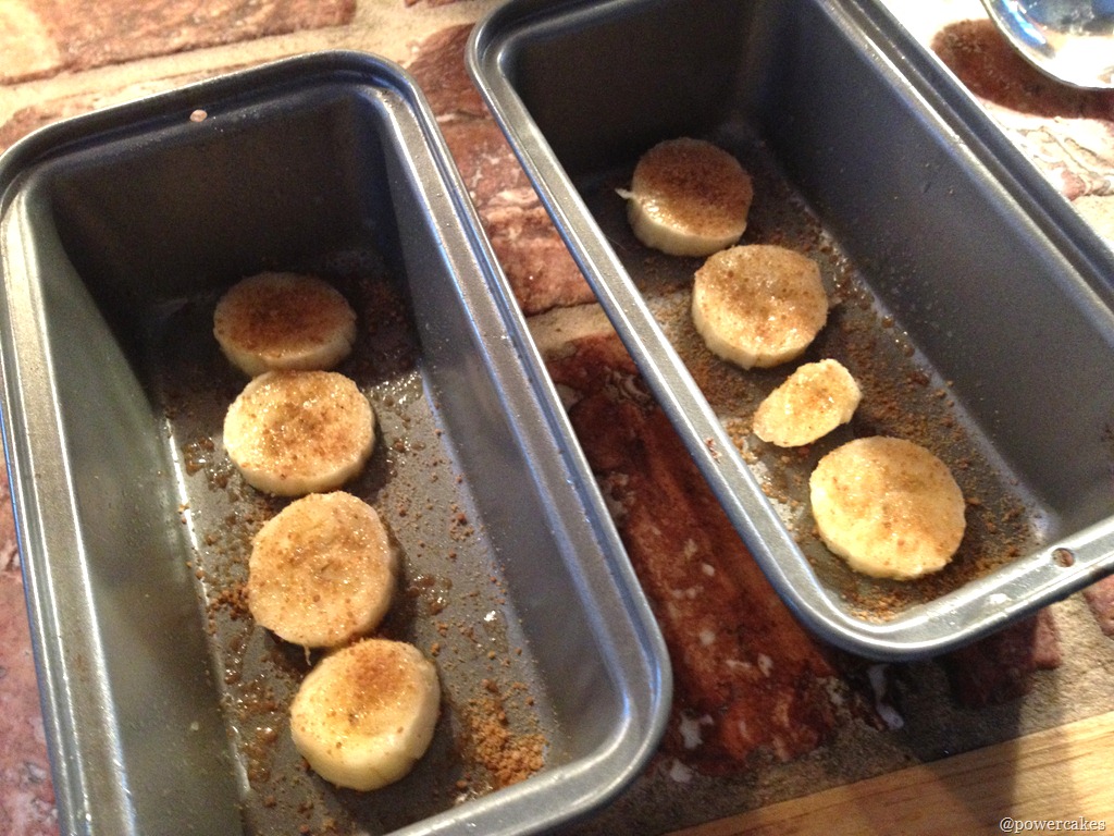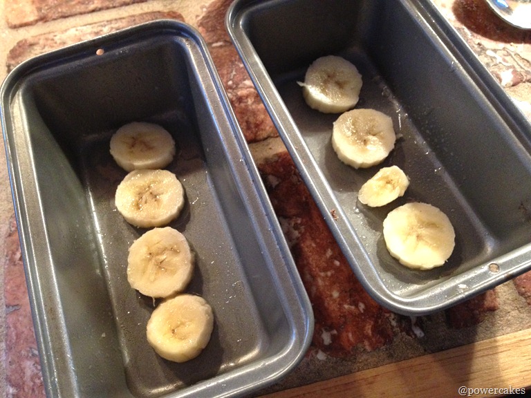 - Added sliced banana’s to the bottom of the mini loaf pan with a sprinkle of coconut sugar