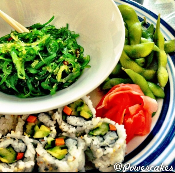 *Veggie avocado sushi rolls, sea weed salad, ginger, & edamame!