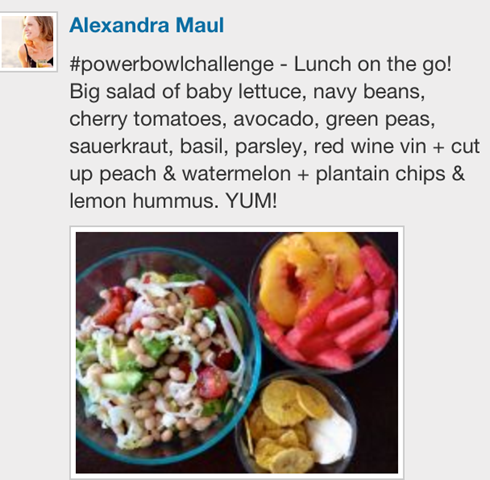 - Upload a picture or leave a comment of your own POWERBOWL creation to share with me & the other participants by downloading the iPhone app or coming to the site every day to post.