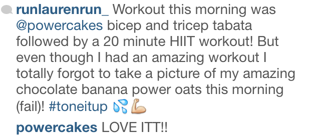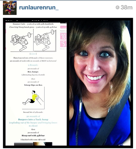 I love to learn that you guys are doing some of my posted workouts. Just like the adorable Lauren did this morning on Instagram! ![]()